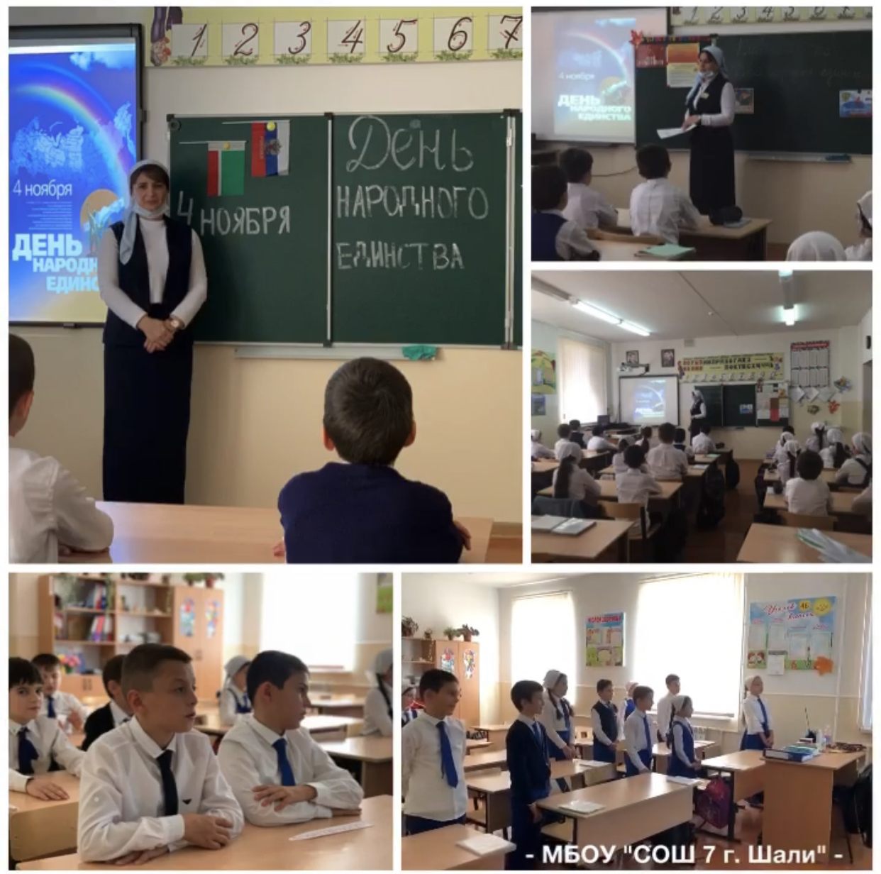 В рамках празднования Дня народного единства в МБОУ «СОШ № 7 г. Шали» прошли классные часы