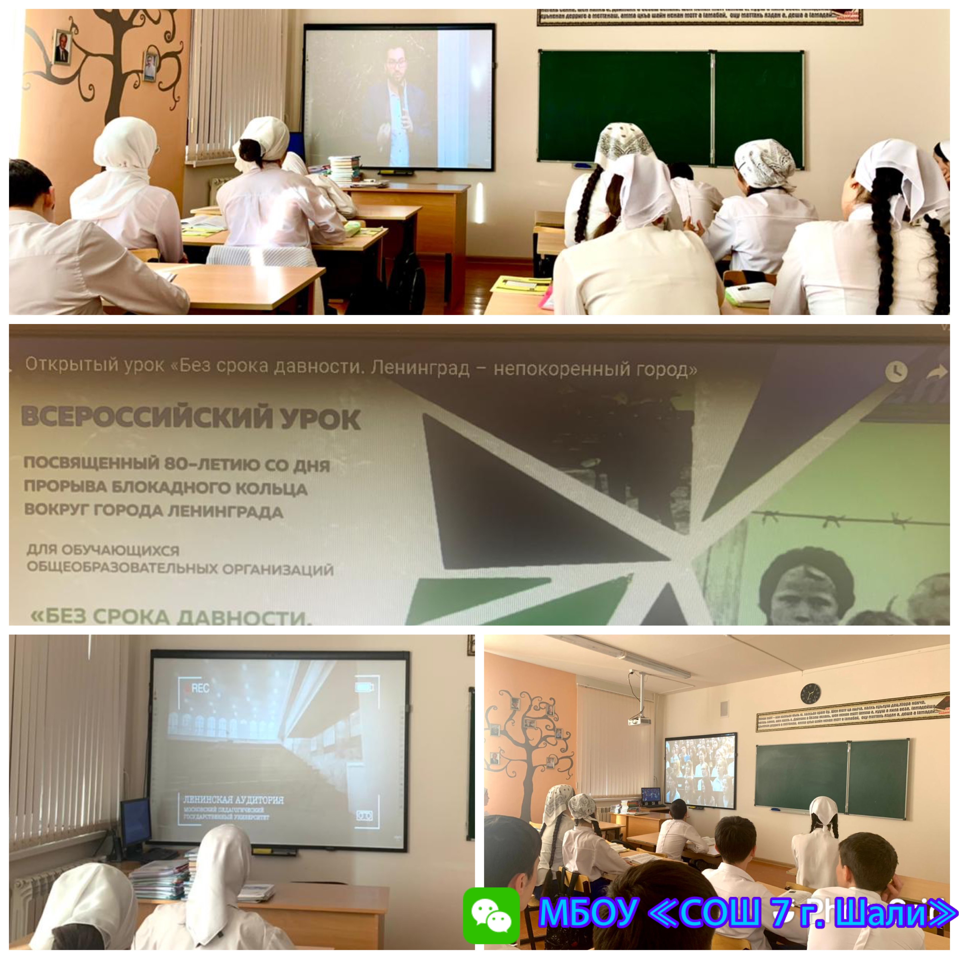 27.01.2023 года в МБОУ «СОШ 7 г.Шали» провели единый Всероссийский урок "Без срока давности:Ленинград-непокоренный город".