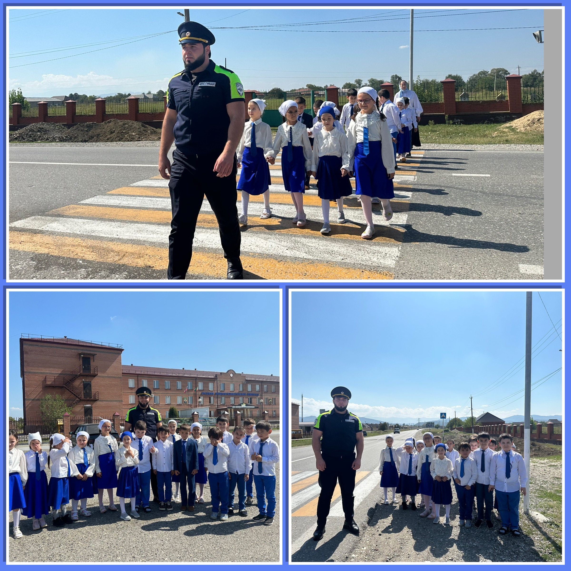 В рамках акции "Внимание - дети!" в школе состоялась встреча первоклассников с инспектором ДПС Абуезидовым Магомед-Заидом Алашовичем . Ребята поучаствовали в пешеходной экскурсии, в ходе которой они узнали об основных правилах дорожного движения для пешеходов.