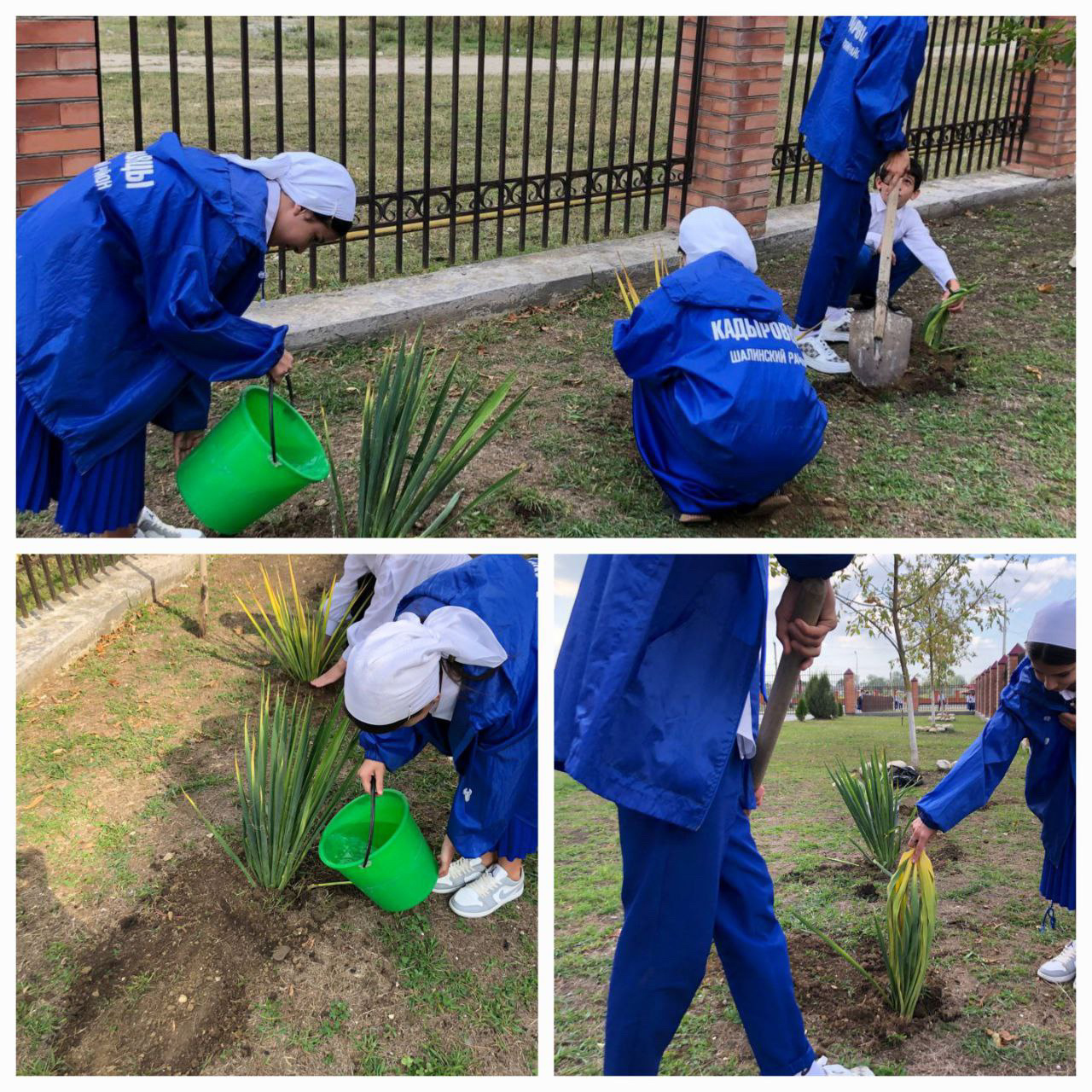 20 сентября, активисты отряда "Юные Кадыровцы" благоустраивают школьный двор.