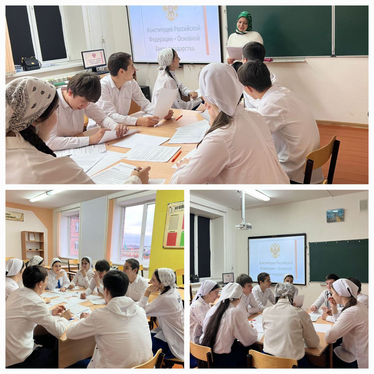 В МБОУ "СОШ № 7" г.Шали с обучающимися 9 класса состоялся круглый стол на тему "Конституция Российской Федерации - основной закон государства", посвященный Дню Конституции РФ - 12 декабря.