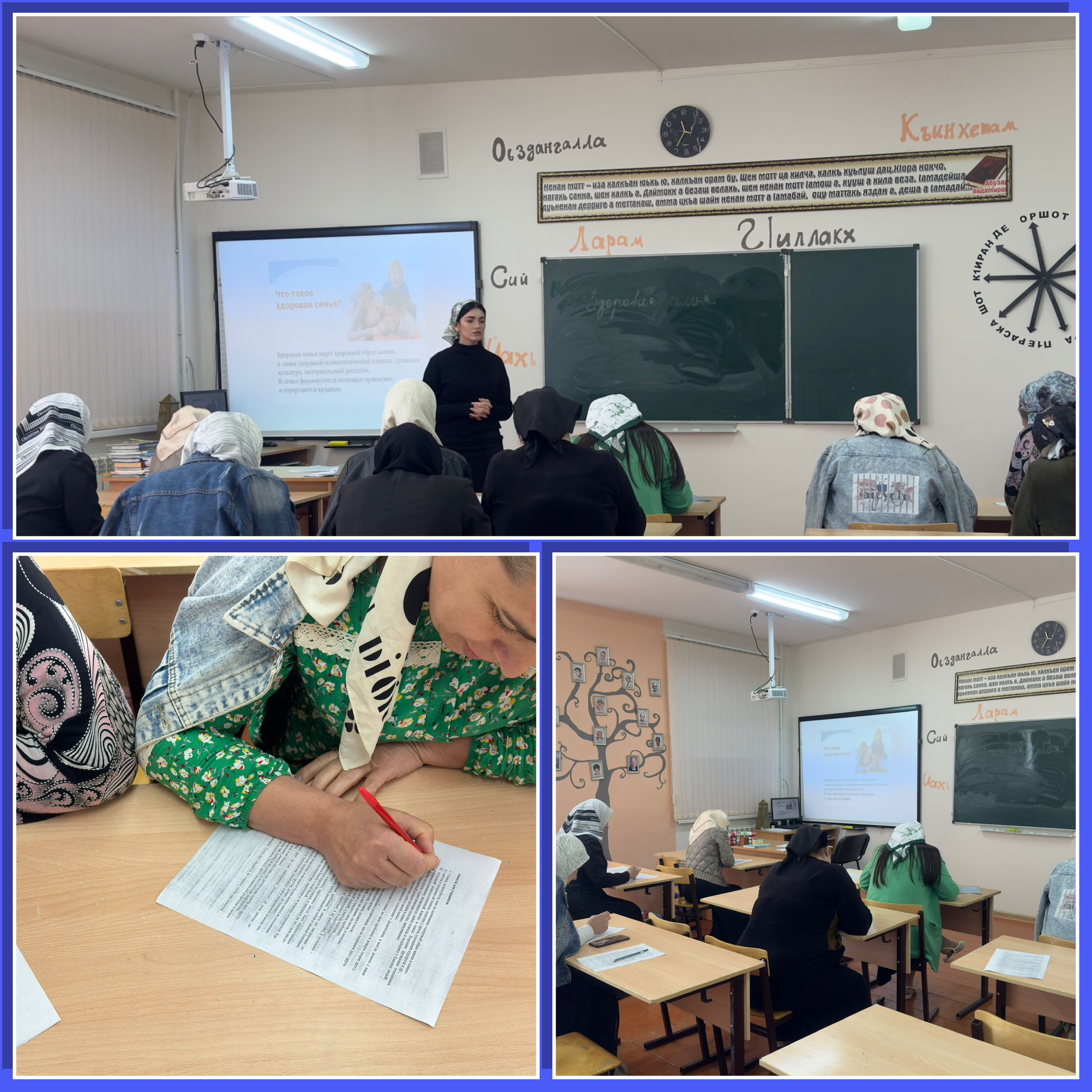 В рамках профилактических мероприятий по СПТ на базе МБОУ СОШ 7 педагогом-психологом Айшат Умаровной был проведен семинар для родителей на тему «Здоровье в семье». Родители прошли анкетирование по данной теме. Анкетирование проводилось с целью выявить состояние физкультурно-оздоровительной работы в семье, а также уровень знаний родителей, необходимых для организации физического воспитания в семье. Родителям была оказана информационная поддержка по вопросам воспитания здорового образа жизни.